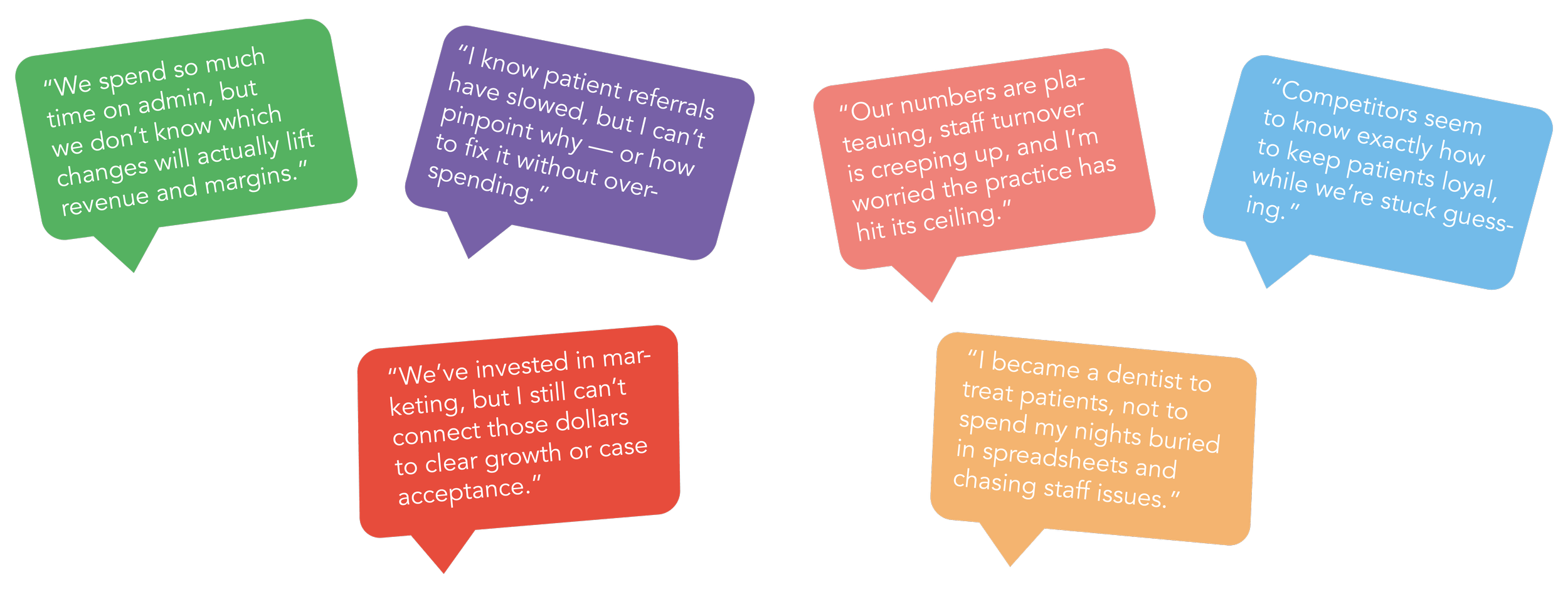 As a specialised dental growth and optimisation firm, we help practice owners move from flatlining to thriving by: