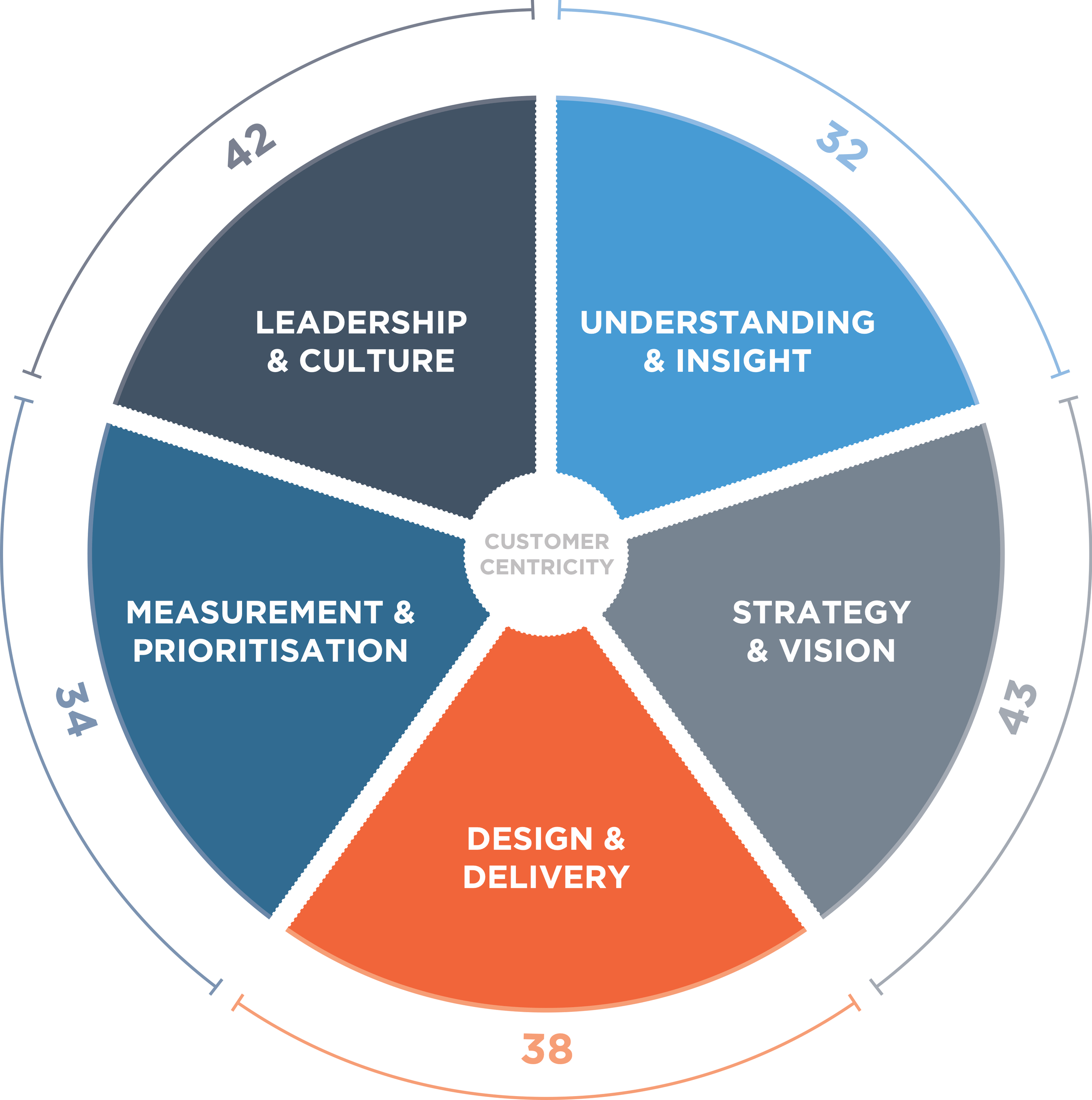 This diagnostic approach reveals the gap between where you are today and where you need to be to achieve customer-centric growth, providing actionable insights and prioritised recommendations for improvement.